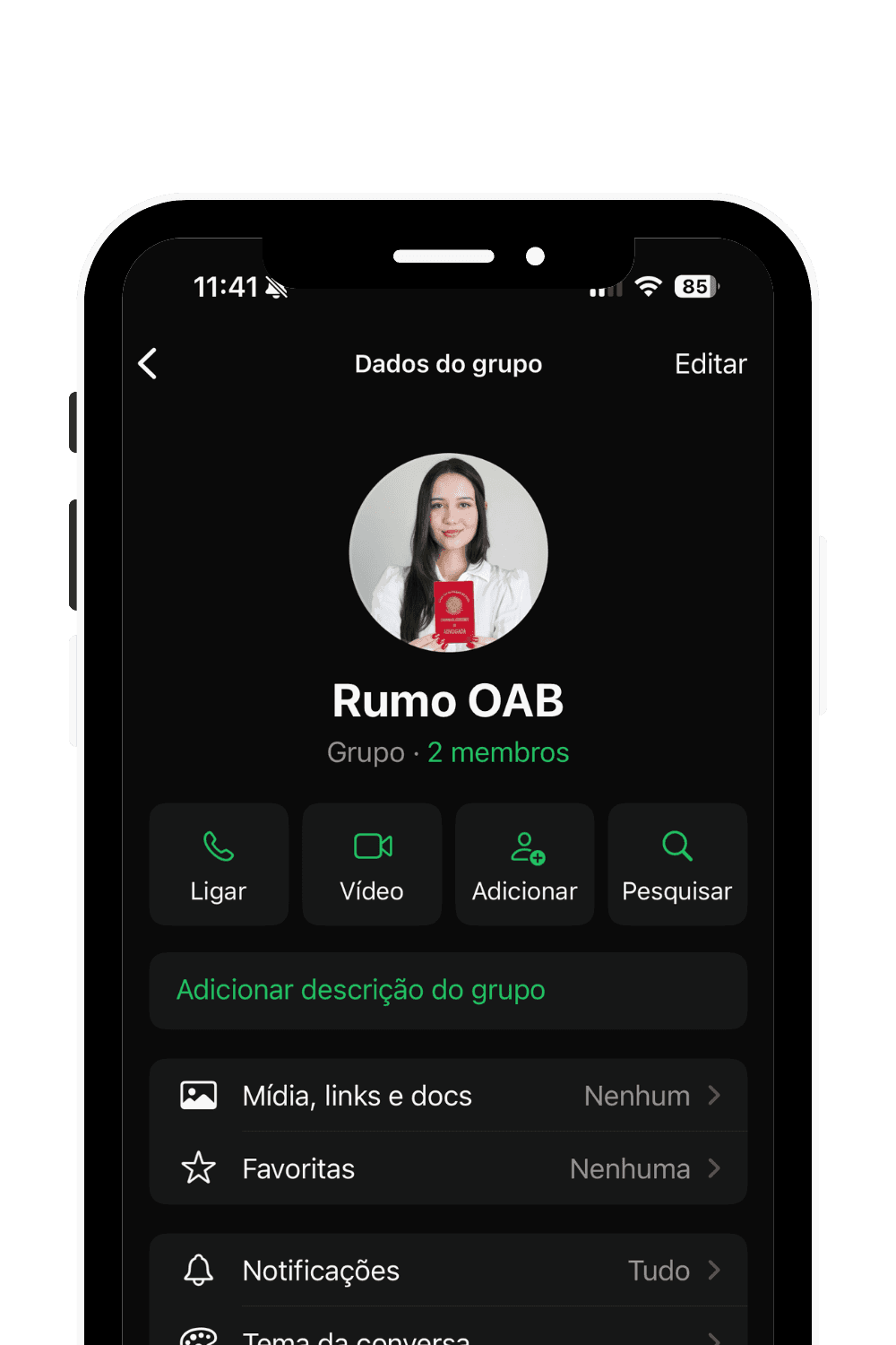 Grupo de WhatsApp com professores prontos para tirar suas dúvidas.